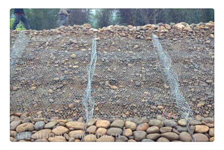 雷諾護(hù)墊是厚度在0.15-0.5m(含0.5m)的網(wǎng)箱結(jié)構(gòu)。主要用作河道、岸坡、路基邊坡護(hù)坡結(jié)構(gòu)。既可防止河岸遭水流、風(fēng)浪侵襲而破壞,又實(shí)現(xiàn)了水體與坡下土體間的自然對(duì)流交換功能,達(dá)到生態(tài)平衡。坡上植綠可增添景觀、綠化效果。